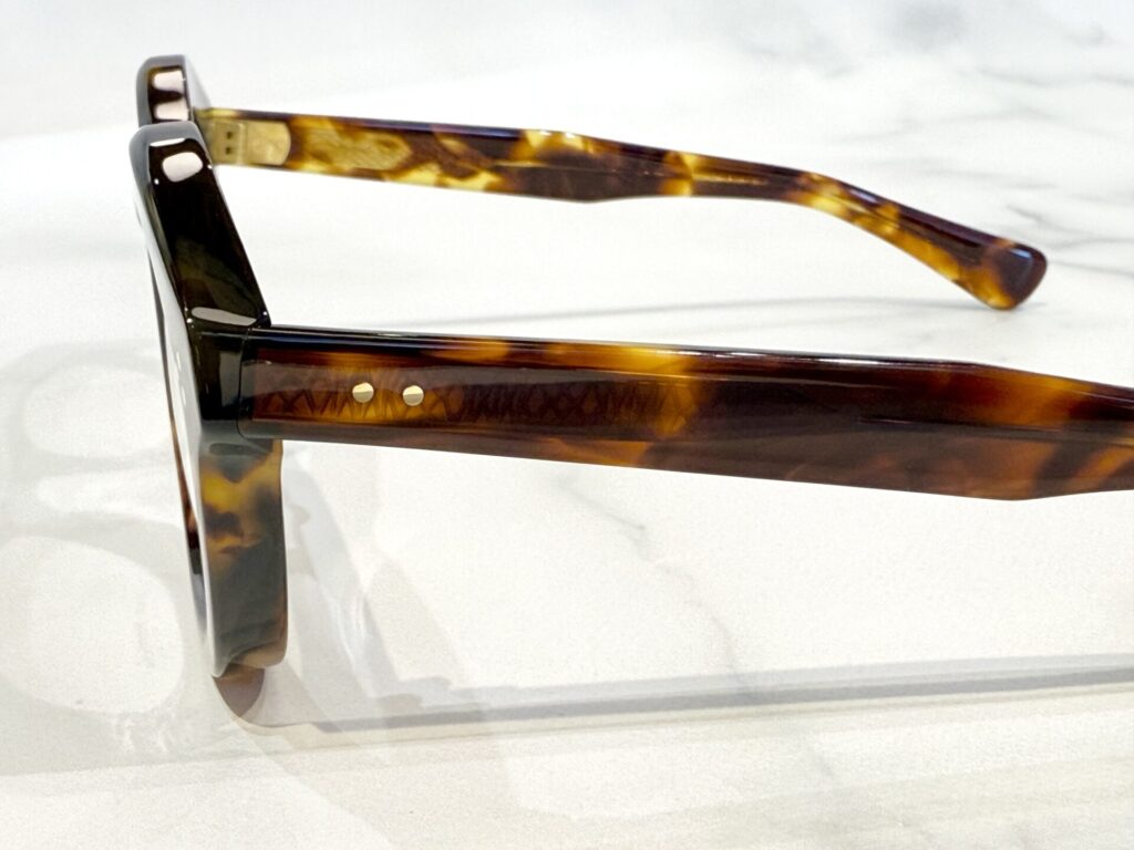 上下非対称で広がっているテンプルも特徴です